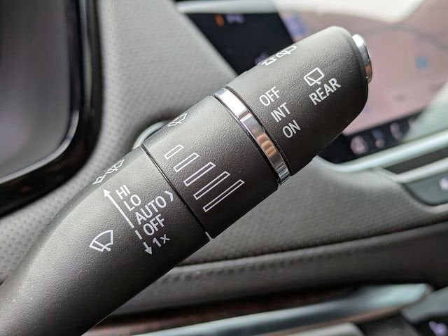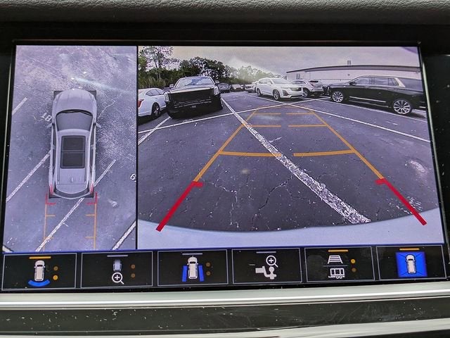 - Opens or closes when the system senses the key fob and the driver extends their foot under the left-hand side of the rear bumper over an image of the Cadillac Crest projected under the vehicle