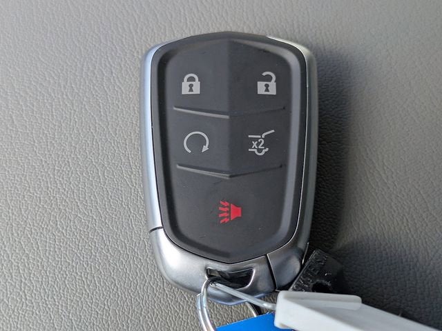 - Opens or closes when the system senses the key fob and the driver extends their foot under the left-hand side of the rear bumper over an image of the Cadillac Crest projected under the vehicle