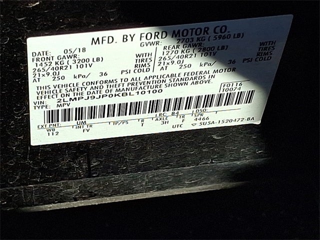 **EQUIPMENT GROUP 800A BLACK LABEL, **REMOTE START SYSTEM, **TECHNOLOGY PACKAGE, **360 DEGREE CAMERA, **ACTIVE PARK ASSIST, **DRIVER ASSISTANCE PACKAGE, **LANE KEEPING SYSTEM, **ACC W/LANE CENTERING, **ADAPTIVE STEERING, **TRAILER TOW PACKAGE CLASS II, **22-WAY MULTI CONT FRONT SEATS, **BLIND SPOT DETECTION W/CTA, **FORWARD COLLISION WARNING, **REVEL ULTIMA AUDIO, **WIRELESS CHARGING PAD, **AMBIENT LIGHTING, **DUAL CLIMATE CONTROL, **PANORAMIC VISTA ROOF, **REAR HEATED SEATS, **HEATED/COOLED FRONT SEATS, **HANDS FREE LIFTGATE, **AND SO MUCH MORE, 19 Speakers, 3.80 Axle Ratio, 360 Degree Camera, 4-Wheel Disc Brakes, ABS brakes, Active Park Assist, Adaptive Cruise Control, Adaptive Steering, Adaptive suspension, Air Conditioning, AM/FM radio: SiriusXM, AppLink/Apple CarPlay and Android Auto, Appliques - Silverwood, Auto High-beam Headlights, Auto tilt-away steering wheel, Auto-dimming door mirrors, Auto-dimming Rear-View mirror, Automatic temperature control, Brake assist, Bumpers: body-color, CD player, Chalet Theme, Class II Trailer Tow Package, Collision Mitigation System #2, Compass, Delay-off headlights, Driver Assistance Package, Driver door bin, Driver vanity mirror, Dual front impact airbags, Dual front side impact airbags, Electronic Stability Control, Emergency communication system: 911 Assist, Equipment Group 800A, Exterior Parking Camera Rear, Floor Carpet/Mats - Espresso w/Alcantara Accent, Four wheel independent suspension, Front anti-roll bar, Front Bucket Seats, Front Center Armrest w/Storage, Front dual zone A/C, Front fog lights, Front Park Aid Sensors, Front reading lights, Fully automatic headlights, Garage door transmitter: HomeLink, Genuine wood console insert, Genuine wood door panel insert, Headliner - Cashmere Alcantara, Heated door mirrors, Heated front seats, Heated rear seats, Heated steering wheel, Illuminated entry, Knee airbag, Leather steering wheel, Leather-Wrapped Interior - Cashmere Leather, Lincoln Nautilus Technology Package, Linking-L Perforation Leather Htd/Ventilated Seats, Low tire pressure warning, Memory seat, Navigation System, Occupant sensing airbag, Outside temperature display, Overhead airbag, Overhead console, Panic alarm, Passenger door bin, Passenger vanity mirror, Power door mirrors, Power driver seat, Power Liftgate, Power moonroof: Panoramic Vista Roof, Power passenger seat, Power steering, Power windows, Radio data system, Radio: Revel Ultima System w/Single-CD, HD & Nav, Rain sensing wipers, Rear anti-roll bar, Rear reading lights, Rear seat center armrest, Rear window defroster, Rear window wiper, Remote keyless entry, Security system, Speed control, Speed-sensing steering, Speed-Sensitive Wipers, Split folding rear seat, Spoiler, Steering wheel memory, Steering wheel mounted A/C controls, Steering wheel mounted audio controls, SYNC 3 Communications & Entertainment System, Tachometer, Telescoping steering wheel, Tilt steering wheel, Traction control, Trip computer, Turn signal indicator mirrors, Variably intermittent wipers, Ventilated front seats, Voice-Activated Touchscreen Navigation System, Wheels: 21 Painted Ultra Bright Machined Alum.