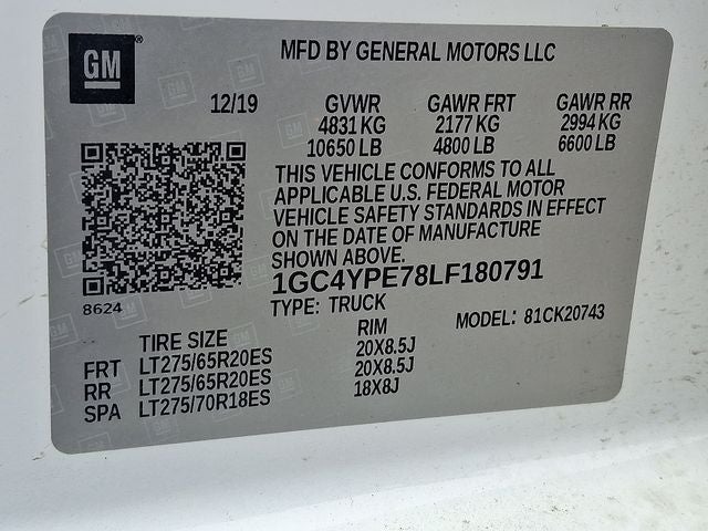 - Tire, spare LT275/70R18 all-terrain, blackwall (Included and only available with (QF6) LT275/70R18E all-terrain, blackwall tires or (QF9) LT275/65R20 all-terrain, blackwall tires with (E63) Durabed, pickup bed. Available to order when (ZW9) pickup bed delete and (QF6) LT275/70R18E all-terrain, blackwall tires are ordered.)