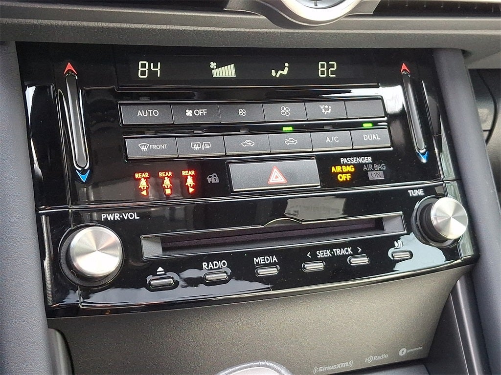 This Vehicle Includes the Following Options: 10 Speakers, 4-Wheel Disc Brakes, ABS brakes, Air Conditioning, Alloy wheels, AM/FM radio: SiriusXM, Apple CarPlay/Android Auto, Auto High-beam Headlights, Auto-dimming door mirrors, Auto-dimming Rear-View mirror, Automatic temperature control, Brake assist, Bumpers: body-color, CD player, Compass, Delay-off headlights, Driver door bin, Driver vanity mirror, Dual front impact airbags, Dual front side impact airbags, Electronic Stability Control, Emergency communication system: Lexus Enform Safety Connect (with a 3-year trial), Exterior Parking Camera Rear, Four wheel independent suspension, Front anti-roll bar, Front Bucket Seats, Front Center Armrest, Front dual zone A/C, Front fog lights, Front reading lights, Fully automatic headlights, Garage door transmitter: HomeLink, Heated & Ventilated F SPORT Seats, Heated door mirrors, Heated front seats, Heated steering wheel, Illuminated entry, Knee airbag, Leather Shift Knob, Low tire pressure warning, NuLuxe Seat Trim, Occupant sensing airbag, Outside temperature display, Overhead airbag, Overhead console, Panic alarm, Passenger door bin, Passenger vanity mirror, Power door mirrors, Power driver seat, Power passenger seat, Power steering, Power windows, Radio data system, Radio: Multimedia System w/8 Color Touchscreen, Rain sensing wipers, Rear anti-roll bar, Rear reading lights, Rear seat center armrest, Rear side impact airbag, Rear window defroster, Remote keyless entry, Security system, Speed control, Speed-sensing steering, Speed-Sensitive Wipers, Split folding rear seat, Spoiler, Sport steering wheel, Steering wheel mounted audio controls, Tachometer, Telescoping steering wheel, Tilt steering wheel, Traction control, Trip computer, Turn signal indicator mirrors, Variably intermittent wipers, Ventilated front seats, and Wheels: 19 x 8.5J Front & 19 x 9.5J Rear.