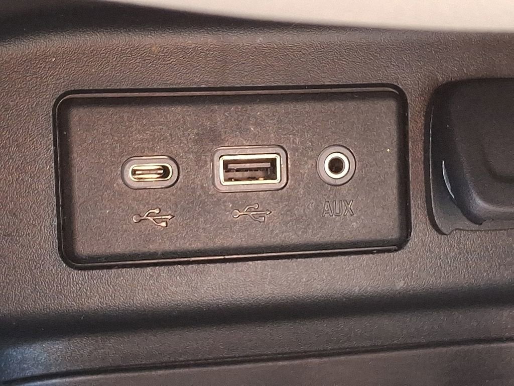 - USB ports, 2, with auxiliary input jack, located in front center stack storage area