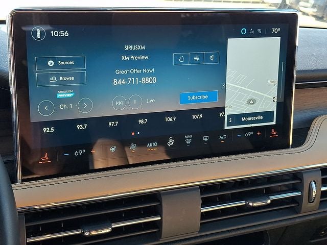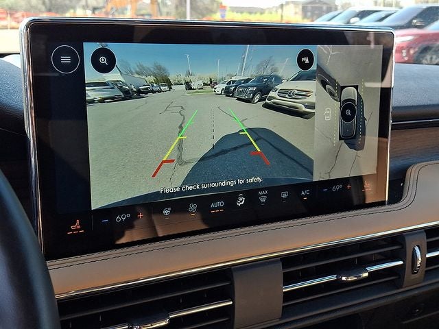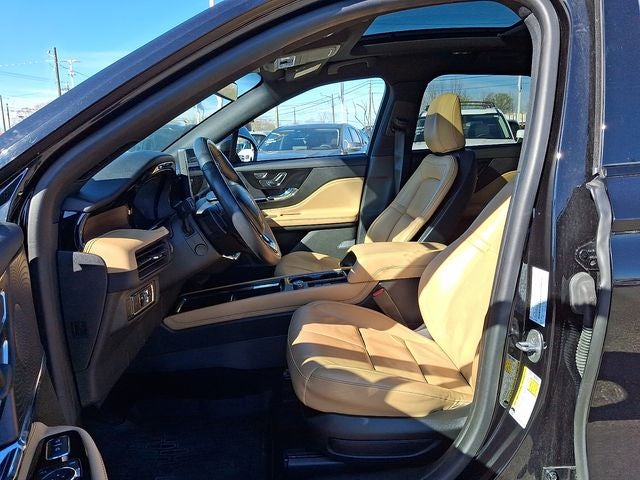 This Vehicle Includes the Following Options: Equipment Group 201A (60/40 EasyFold Rear Seat w/Power Seatback Release, Frameless Auto Dimming Rearview Mirror, Hands-Free Liftgate, Heated Sideview Mirrors, Heated Steering Wheel, Heated/Ventilated Driver & Front Passenger Seats, Phone As A Key (PAAK), Power Tilt/Telescoping Steering Column w/Memory, Rain Sensing Wipers, Universal Garage Door Opener, Windshield Wiper De-Icer, and Wireless Charging Pad), Jet Appearance Package (Body-Color Exterior Elements, Pillar Black Exterior Elements, and Wheels: 20 Black Aluminum), 10 Speakers, 19 Bright Machined Aluminum Wheels, 3.81 Axle Ratio, 360-Degree Camera, 4-Wheel Disc Brakes, ABS brakes, Air Conditioning, All-Weather Floor Liners w/Fr&Rr Carpet Floor Mats, Alloy wheels, AM/FM radio: SiriusXM, Auto High-beam Headlights, Auto-dimming Rear-View mirror, Automatic temperature control, Brake assist, Bumpers: body-color, Cargo Area Protector, Compass, Delay-off headlights, Driver door bin, Driver vanity mirror, Dual front impact airbags, Dual front side impact airbags, Electronic Stability Control, Emergency communication system: SYNC 4 911 Assist, Four wheel independent suspension, Front anti-roll bar, Front Bucket Seats, Front Center Armrest, Front dual zone A/C, Front reading lights, Front/Side/Rear Parking Sensors, Fully automatic headlights, Heated door mirrors, Heated front seats, Illuminated entry, Knee airbag, Leather steering wheel, Lincoln Premium Audio System Subwoofer Delete, Low tire pressure warning, Memory seat, Navigation system: Connected Navigation (3-year trial), Occupant sensing airbag, Outside temperature display, Overhead airbag, Overhead console, Panic alarm, Panoramic Vista Roof w/Power Shade, Passenger door bin, Passenger vanity mirror, Power door mirrors, Power driver seat, Power Liftgate, Power passenger seat, Power steering, Power windows, Premium Leather Heated Comfort Seats, Radio data system, Radio: Lincoln Premium Audio System w/MP3, Rear anti-roll bar, Rear Parking Sensors, Rear reading lights, Rear seat center armrest, Rear window defroster, Rear window wiper, Remote keyless entry, Reverse Brake Assist, Roof rack: rails only, Security system, SiriusXM Radio, Speed control, Speed-sensing steering, Speed-Sensitive Wipers, Split folding rear seat, Spoiler, Steering wheel mounted A/C controls, Steering wheel mounted audio controls, SYNC 4 Communications & Entertainment System, Tachometer, Telescoping steering wheel, Tilt steering wheel, Traction control, Trip computer, and Variably intermittent wipers.