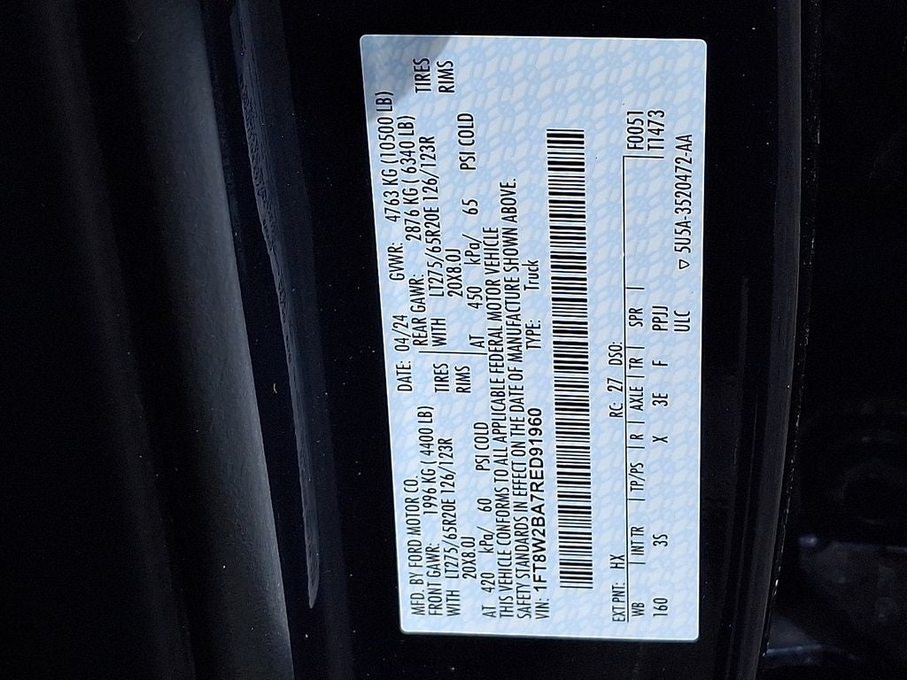 This Vehicle Includes the Following Options: F-250 >10K GVWR Package, FX4 Off-Road Package (Hill Descent Control, Off-Road Specifically Tuned Shock Absorbers, and Unique FX4 Off-Road Box Decal), GVWR: 10,000 lb Payload Package, Order Code 603A, Sport Appearance Package (Black Tow Hooks, Body-Color Front & Rear Bumpers, Dark Painted Grille, and Sport 4x4 Box Side Decal), XLT Premium Package (Body-Color Door Handles, Electrochromic Self-Dimming Rear-View Mirror, Intelligent Access w/Push-Button Start, Radio: B&O Sound System by Bang & Olufsen, and Remote Tailgate Release), 4WD, 4-Wheel Disc Brakes, 6 Speakers, ABS brakes, Air Conditioning, Alloy wheels, AM/FM radio, AM/FM Stereo w/MP3 Player, Auto High-beam Headlights, Brake assist, Bumpers: chrome, Cloth 40/20/40 Split Bench Seat, Compass, Defrost w/Fixed & Privacy Glass, Delay-off headlights, Driver door bin, Driver vanity mirror, Dual front impact airbags, Dual front side impact airbags, Electronic Stability Control, Emergency communication system: SYNC 4 911 Assist, Exterior Parking Camera Rear, Front anti-roll bar, Front Center Armrest w/Storage, Front fog lights, Front License Plate Bracket, Front reading lights, Fully automatic headlights, Heated door mirrors, Illuminated entry, Low tire pressure warning, Outside temperature display, Overhead airbag, Overhead console, Panic alarm, Passenger door bin, Passenger vanity mirror, Power door mirrors, Power driver seat, Power steering, Power windows, Privacy Glass, Rear reading lights, Rear step bumper, Remote keyless entry, Speed control, Split folding rear seat, Steering wheel mounted audio controls, SYNC 4, Tachometer, Telescoping steering wheel, Tilt steering wheel, Traction control, Trip computer, Turn signal indicator mirrors, Variably intermittent wipers, Wheels: 18 Sparkle Silver Painted Cast Aluminum, and Wheels: 20 Dark Carbonized Gray Painted Aluminum.