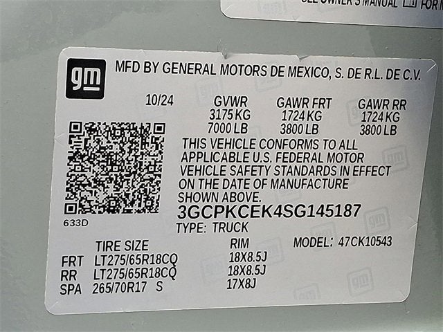 CARFAX One-Owner. Clean CARFAX. Slate Gray Metallic 2025 Chevrolet Silverado 1500 Custom Trail Boss 4WD 8-Speed Automatic 2.7L I4 Turbocharged DOHC 16V LEV3-SULEV30 310hp 8-Speed Automatic, 4WD, Black Cloth.